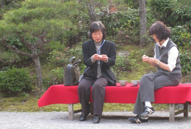 A more informal tea ceremony at a garden cafe: