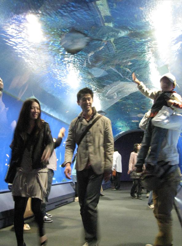 From mythical animals to denizens of the sea. In Osaka we visit the multi-story aquarium. The largest of the tanks was four stories, containing an impressively large Whale Shark as well as an array of rays.
