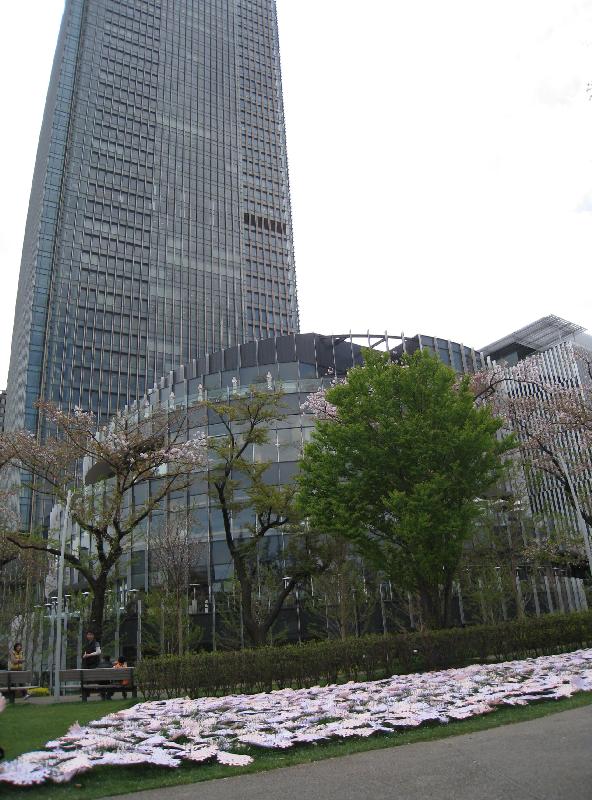 A few smart high-rises spring up but it's back to the sprawl. The Old and the New brush shoulders with a casual disregard for style here in the suburbs. A few blossom trees poke through the tiny gardens of bleak housing. Without these pink flashes of blossom, there would be only electricity pylons for trees.