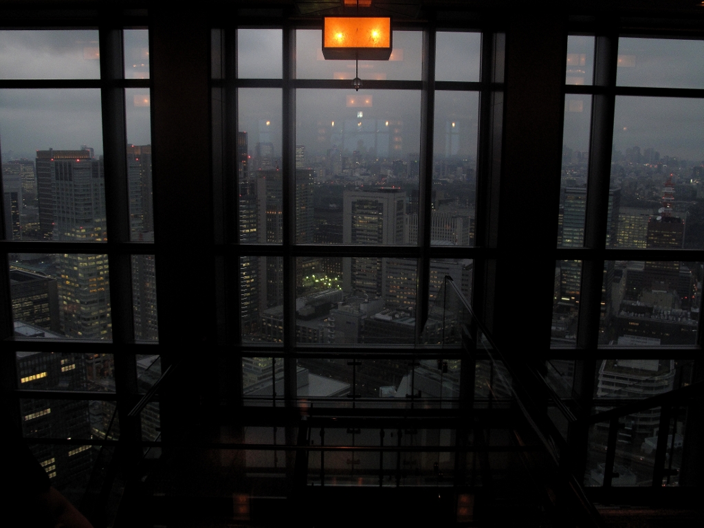 From the top of a skyscraper, everything about Tokyo looks different. From the stark reality of being dwarfed by your surroundings, a mere speck amongst monstrous power, you rise up to the clouds and look down. Locked into this bubble of luxury, I am struck by a view that could have inspired Isaac Asimov's fabled city planet of Trantor. At this scale, the bustle of the city is lost to sheer enormity. Behind the glass and a veil of Jazz, the cloak of evening, the sounds of the world below are edited out, leaving only the graceful passage of trains snaking along trajectories, and the flashing of red beacons atop the city's sky-scrapers. Man built this, but it seems utterly inconceivable; we are only visitors in this realm. This was surely the work of a greater power.